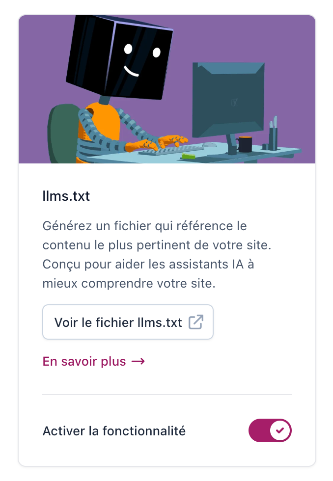 Le llms.txt est bien plus qu’un simple fichier texte. Il s’agit d’une carte au trésor pour l’IA, qui sélectionne le meilleur contenu digestible par l’IA de votre site pour l’inférence. Contrairement au robots.txt qui limite l’accès, le llms.txt guide activement les modèles d’IA vers vos contenus les plus pertinents.